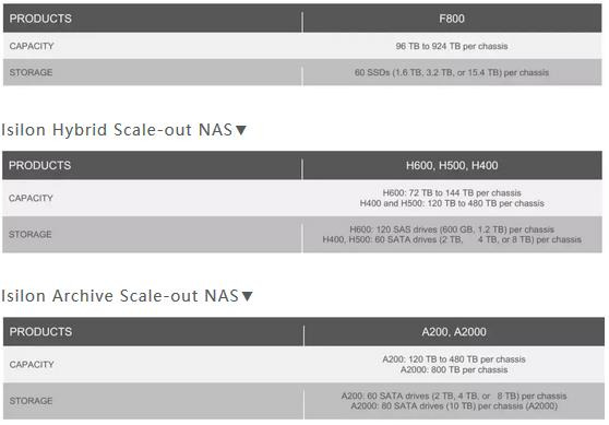 戴爾易安信的Isilon是一個分布式集群NAS系統(tǒng),支持主流的網(wǎng)絡(luò)文件系統(tǒng)、對象、REST、SWIFT、HDFS等訪問協(xié)議。Isilon系統(tǒng)分為三個子型號:F、H、A。