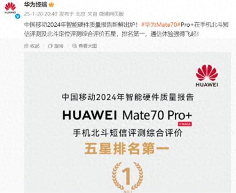 1月20號,據中國移動2024年智能硬件質量報告顯示,華為Mate70 Pro+在北斗短信和北斗定位兩項評測中雙雙拿下了第一名,展現出非常強的技術和實力。這款搭載雙衛(wèi)星通信技術的旗艦機,到底有什么過人之處?